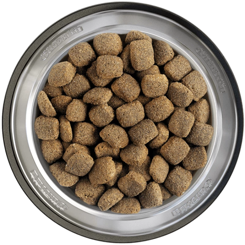Frisches Geflügelfleisch (30 %); Reis (18 %); Mais; Hafermehl aus geschälter Saat; Geflügelprotein, aschearm, getrocknet (13 %); Ei, getrocknet; Fischmehl aus Meeresfischen (2,5 %); Gelatine, hydrolysiert (2,5 %); Bierhefe, getrocknet (2,5 %); Johannisbrotschrot, getrocknet; Rübentrockenschnitzel, entzuckert; Dicalciumphosphat; Geflügelfett; Pflanzenöl (Palm; Kokos); Geflügelleber, hydrolysiert; Chiasaat; Leinsaat; Natriumchlorid; Kaliumchlorid