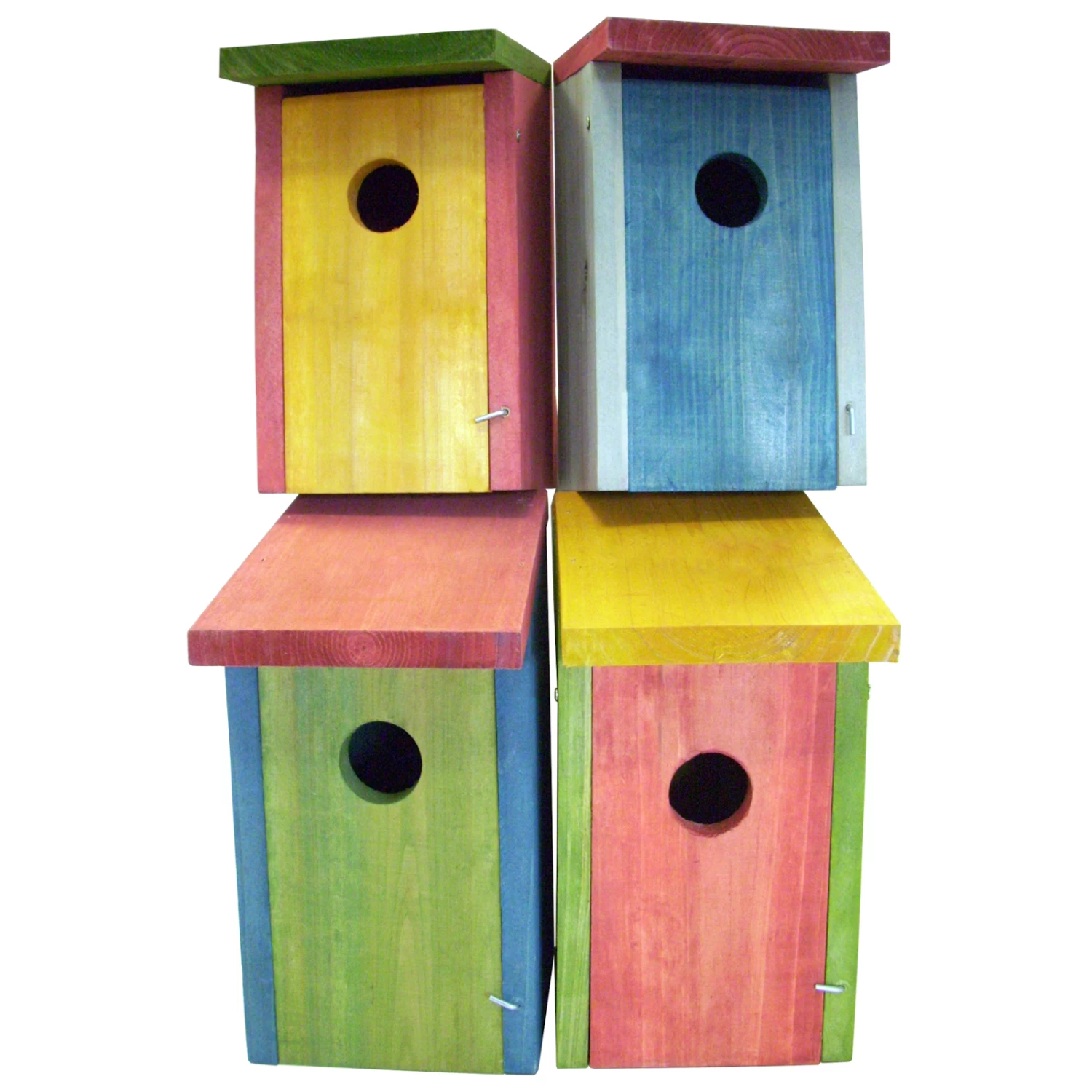 Dieser Nistkasten bietet Ihren Gartenvögeln einen bunten Nistplatz.
