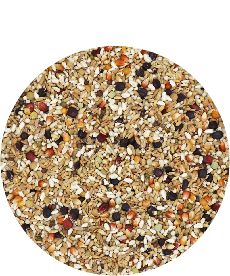 Die ideale Diätmischung mit vier verschiedenen Maissorten: Mischung aus schwarzem, bordeaux, rotem und kleinem Cribs-Mais